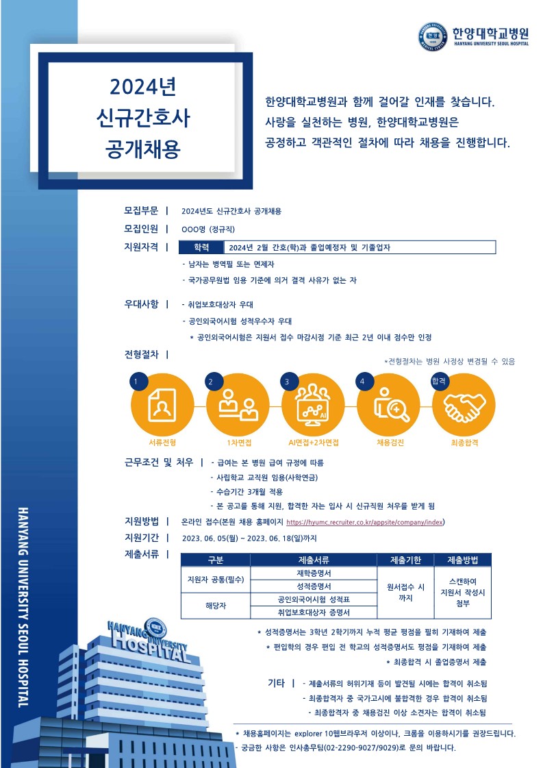 한양대학교병원 2024년 신규간호사 공개채용