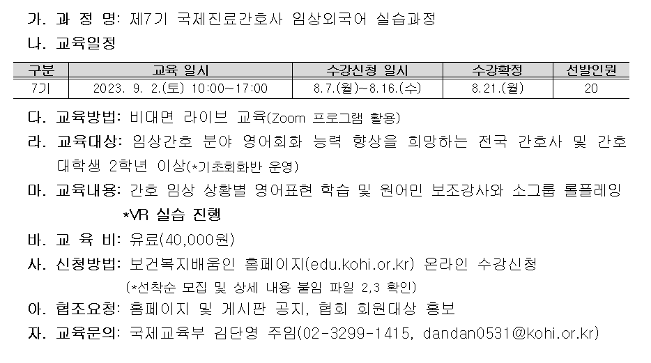 2023년 제7기 국제진료간호사 임상외국어 실습과정 교육 홍보 안내문.pdf