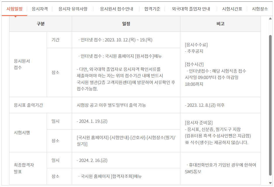 2024년 1월 간호사 시험정보관련 접수기간, 시험일정 안내